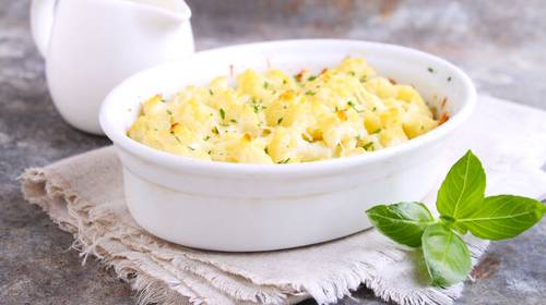 Третий слой. Которым укладываем 2/3 от общего количества тушеных овощей. Уже на них — оставшуюся у нас в резерве цветную капусту. Это четвертый, но еще не последний слой.