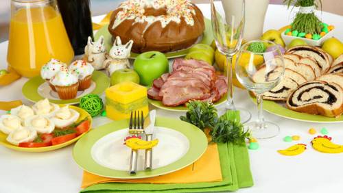 5. Пасхальный стол — это богатое разнообразие мясных блюд: холодных закусок (холодец или студень, буженина, нарезки), а также горячего (мясо, запеченное в духовке, жареные рёбрышки, утка или курица с яблоками, и т. д.). Главное — проявить фантазию… Напротив, неуместными окажутся рыба или какие-то вегетарианские блюда: Пост позади, самое время наслаждаться праздничными кулинарными изысками!
