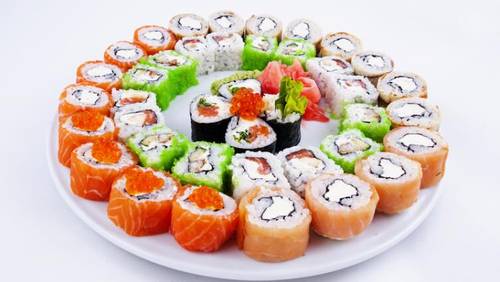 Основными ингредиентами суши считаются: рис, сырая рыба, овощи, морепродукты. Имбирь, авокадо и соевый соус также являются неотъемлемой частью японской кухни.