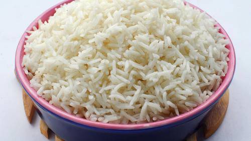 На сковородке разогрела 2 столовых ложки растительного масла. Затем высыпала 1 стакан сухого риса. Обжарила его до золотистости. Потом посолила, добавила 2 стакана воды и варила до полной готовности. Приготовленный рис я выложила на середину большого блюда.