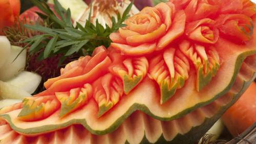 Выбирая продукты для карвинга, следите за тем, чтобы фрукты и овощи были свежими и плотными. Это нужно для того, чтобы творения, сделанные их качественного исходного материала, как можно дольше не увядали и радовали своей красотой и свежим видом. В процессе карвинга можно экспериментировать с любыми овощами: картофелем, огурцами, крупным редисом
