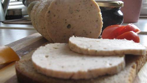 Впрочем, есть способ приготовить вполне натуральный и очень вкусный колбасоподобный продукт в домашних условиях. Это действительно недорого, увлекательно и оставляет огромный простор для творчества. Рецепт интересный, в процессе не хлопотный, а результат шикарный! Одна есть существенная сложность — не отрезать кусочек раньше положенного срока. Поэтому советую готовить блюдо с вечера, а наслаждаться уже утром.