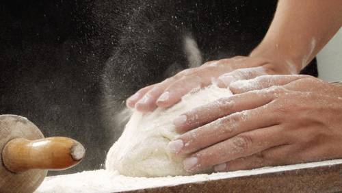 Через 2−2,5 часа после смешивания в тесто, если начальный рост силен, нужно снова подмешать муку, посыпать ею поверхность теста.