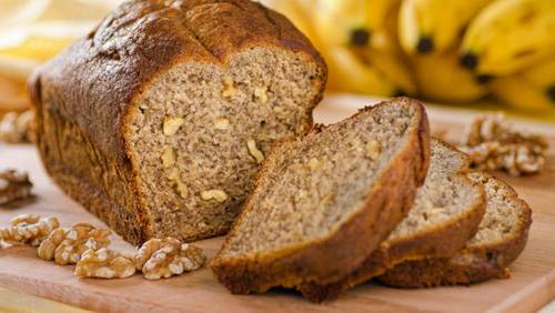 Форму для выпечки лучше брать либо прямоугольную для хлеба, либо круглую, среднего диаметра (20−25 см), с высокими бортиками. Форму смазывать маслом не нужно, бананы и так достаточно жирны, не прилипнет точно. К слову, можно использовать то же самое тесто и для приготовления банановых маффинов, правда, в этом случае время выпекания следует сократить примерно до 20 минут.