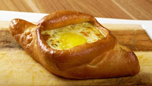 Хачапури по-аджарски — отдельный разговор. Делаются из дрожжевого теста, на серединку кладётся хорошо размятый сыр, но защипываются они не полностью, а с двух сторон, как будто делаем лодочку. Ставим ненадолго поднос с аджарули (так они называются по-грузински) в духовку, на стадии полуготовности в серединку каждого хачапури выливаем сырое яйцо и снова в жар. Желток ни в коем случае не должен растечься! Как только яйцо зажарилось — можно есть.
