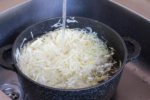 Второй способ полегче. Шинкуешь капусту и трешь морковь точно так же, как и для первого рецепта. Варишь тузлук (рассол): на 1 литр воды — 2 столовых ложки соли, черный перец горошком и лавровый лист, сколько не жалко. В немного остывший тузлук добавляем на каждые два литра воды одну столовую ложку уксуса, лучше винного. Заливаем шинкованную капусту-морковку тузлуком и каждый день в течение трех суток протыкаем толщу капусты любым острым длинным предметом для «выпускания газов» со дна емкости.