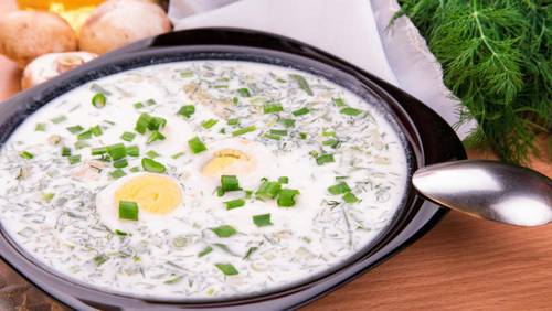 Кроме щавеля, для холодника по оригинальному рецепту понадобится зелёный лук, сметана, огурцы и яйца. Перечень и соотношение ингредиентов не строгое, в зависимости от личных предпочтений и наличия продуктов добавляют и другую зелень.