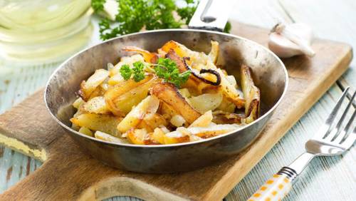 Издавна на Руси мужчине творить чудеса своими руками — привычное дело. В том числе и приготовить это блюдо — «Жареный картофель по-русски». Рецептов много — один другого причудливее, но самый верный и понятный всем способ — в «Большом толковом словаре для одиноких мужчин».