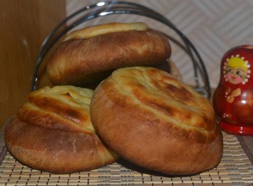 Обычно я делаю несколько маленьких ватрушек и одну большую. На фотографиях кажется, что начинки ощутимо меньше, чем теста. На самом деле, по вкусовым ощущениям её вполне достаточно, потому что дрожжевое тесто воздушное и пористое.