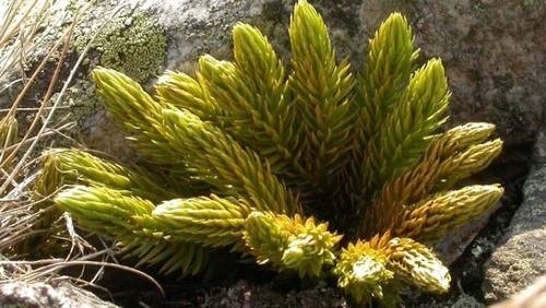 Как и большинство его родственников, этот спорофит является вечнозелёным травянистым растением. Его прямостоячие скрученные ветвящиеся стебли имеют высоту от 5 до 25 см. Они густо покрыты шиловидными листочками, голой остаётся только нижняя часть стебля, имеющая бурый цвет. Все листья растения имеют одинаковый вид и достигают длины 7 мм.