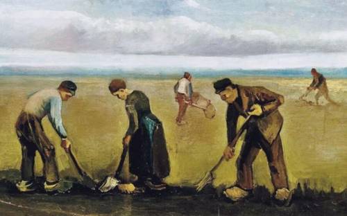Но вот почва достаточно прогрелась. Для средней полосы это конец апреля-начало мая. Можно приступать к посадке основной части картофеля. Сажать будем под лопату, рядами, размечая их по шнуру, расстояние между рядами 120 см. Такое расстояние необходимо для достаточного обеспечения растений солнечным светом. Это кажется очень много. Кто не знает, удивляется, говорит: зачем так широко — земля гуляет! Не гуляет земля. Во время цветения ряды картошки смыкаются, закрывая широкие дорожки между ними. Таким образом площадь огорода используется полностью. А вы, если внимательно читали, должны были заметить, что мы копаем землю только на один штык лопаты — остальную не трогаем, оставляем как есть! Не надо переворачивать тонны земли и это облегчает работу.