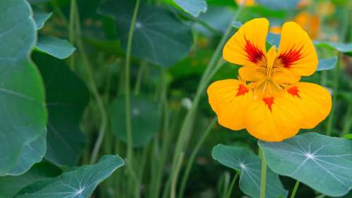 Плетистые сорта настурции идеально подходят для вертикального озеленения. Если вам необходимо «замаскировать» некрасивый деревянный забор, кирпичную стену дома, стенки у беседки или веранды — это ваш цветок. Я сажаю настурцию по периметру компостной ямы, у летнего душа, по обеим сторонам калитки. А еще высаживаю по одному-два растения настурции рядом со стволами яблонь, слив и вишни. Ветвистые стебли настурции расползаются во все стороны, препятствуя росту сорняков, а почва под ней всегда увлажненная и рыхлая, благодаря большому количеству дождевых червей.