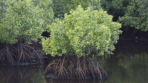Мангры — вечнозелёные, лиственные леса, произрастающие в приливно-отливной зоне морских побережий и устьях рек, которые защищены от разрушительной силы волн коралловыми рифами или островами. Около сорока процентов времени жизни они затоплены водой.