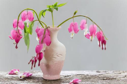 Этот цветок любит постоянство — он не нуждается в ежегодной пересадке и прекрасно цветёт на одном месте 5−6 лет. После этого срока я подыскиваю другое местечко на клумбе. Дицентра у меня растёт в группе с примулой, нарциссами, тюльпанами, гиацинтами. Под эту группу выделен прямоугольник, в одном углу прямоугольника растёт ранняя дицентра, а в противоположном, более затемнённом углу — дицентра красивая. Поэтому такая клумба в течение лета всегда цветущая.
