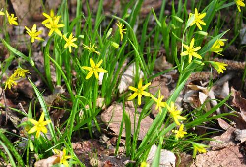 Гусиный лук — одно из самых распространенных растений такого рода. Его ярко-желтые крошечные цветочки похожи на маленькие лилии: шесть остроконечных лепестков на отдельных прямостоячих ножках в окружении листиков, напоминающих по форме зеленый лук.