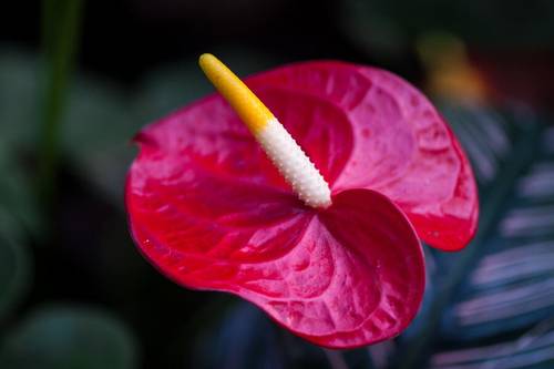 Цветок привлекает внимание своей оригинальностью и яркостью: один ярко окрашенный лепесток, по форме похожий на лист в форме сердечка, который как покрывало охватывает змеевидное соцветие-початок.