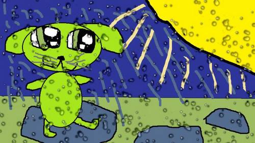 Но, к сожалению, этот противный мокрый дождь иногда мог застать Шмяка и в пути, по дороге домой. Так случилось и в этот раз. Когда Шмяк прогуливался перед сном, вдруг нежданно-негаданно с небес обрушился ливень, да такой сильный, что кругом вмиг образовались здоровенные лужи.
