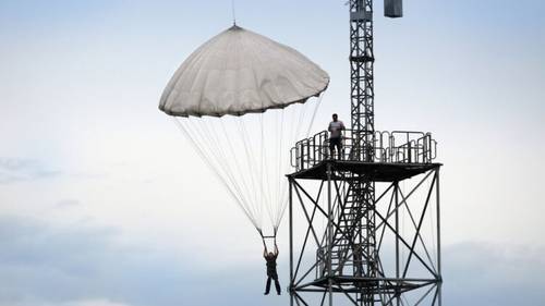 А опытные инструкторы, которые взялись обучать «зелёных» кадетов, постепенно увеличивали высоту, на которую должны были взбираться все те, кто решил научиться прыгать с парашютом.