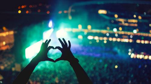 Концерт начинается. Молодые люди машут друг другу со своих мест, вскакивают, танцуют под ритмичную музыку.