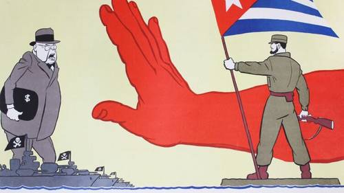 Справа в большом простенке прикрепили огромный портрет Хрущёва с тремя седыми волосинками на лысой голове и оттопыренными ушами в паре с красавцем Фиделем в берете. Они сплели поднятые вверх руки на фоне флагов Кубы и СССР, а под ними большими буквами текст: «Куба не одинока!» В левом простенке разместили портрет