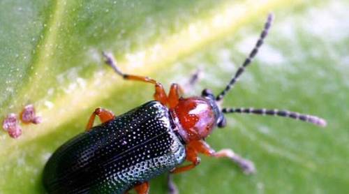 Листья риса были усыпаны тлёй, которую поедали местные божьи коровки. Тут же копошились личинки каких-то жуков и обгладывали листья, оставляя после себя одни жилки. Появился крохотный жучок с красной грудкой и тоже начал поедать лист.