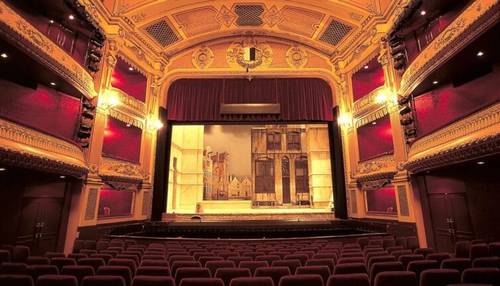Во-первых, мы попали в… Театр! Самый настоящий. Даже кинотеатр «Родина» с ним — ну, никакого сравнения! Дорожки! Здесь везде ковровые дорожки. Потом… Золото! Правда, скорее всего, не настоящее. Но… Очень на него похоже. Наверное это, как его?! Вот, вот. Сусальное золото. И везде… Не лампочки! Люстры! Огроменные. На потолке, так вообще… Если свалится на голову тем, кто внизу, в партере устроился… все, кирдык. Уноси готовеньких. Но и другие люстры… Тоже большие. И не только на потолке. На стенах — тоже. Не такие большие, как на потолке, но зато их — много. Потом, ещё. В кинотеатре — только зал с креслами. А здесь и в зале можно сидеть, и на балконе, и на втором этаже балкона. И сбоку от сцены. В этой, как её?!! Лоджии!