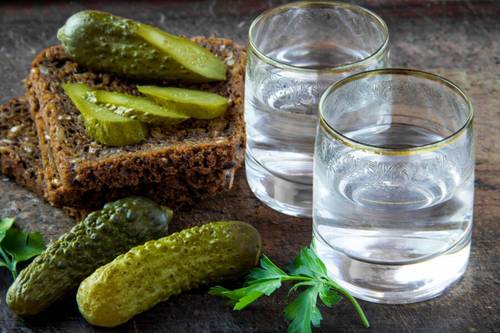 Всё, готовность номер один. Стопка — в правой руке, вилочка с огурчиком — в левой.