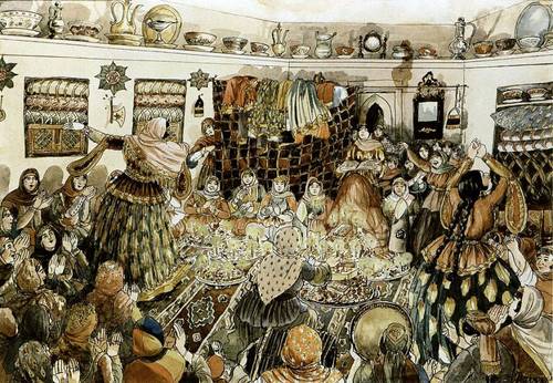 Через некоторое время в эти покои входил жених. Иной раз они видели друг друга в первый раз. Правда, иногда бывали и такие ситуации, как в нашем фильме «Аршин мал алан» (Помните такой фильм старый с Рашидом Бейбутовым? Он был переведен на русский язык, очень нравился Сталину. Раньше этот фильм часто показывали).