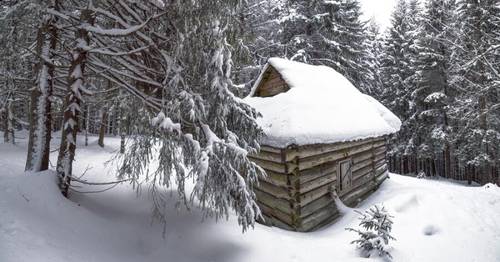 Леса там хвойные, а зимы — снежные. Поэтому крышу зимой, как минимум, раза два приходится очищать от снега, иначе её раздавит — столько снегу там выпадало. Иную зиму — метра три, если не больше. Смотря какая зима. Чтобы снег не так сильно скапливался на крыше, их в тех местах делали очень крутыми, но и это не всегда помогает. Бывает, оттепель небольшая, а потом снова подморозит. Снег и «прилипнет» к крыше. А как примёрзнет, так потом накапливается быстро и в больших количествах.