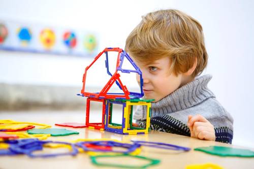 Первое знакомство с формами происходит в раннем возрасте. Взрослые ненавязчиво стараются употреблять «геометрические» признаки предметов. Например: эта тарелка круглая, а эта — квадратная. Стол круглый, подушка квадратная,