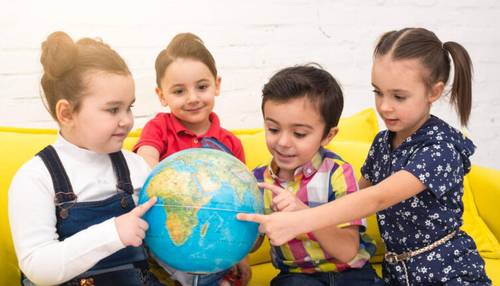 Полезно познакомить малыша с глобусом и картой. Показывая глобус, объясняем, что так выглядит наша Земля. Она имеет форму шара, немного сплюснутого с двух сторон (полюса). Внимательно рассматриваем и замечаем, что глобус разноцветный. Объясняем значение цветов. Особенное внимание уделяем понятиям суши и воды.