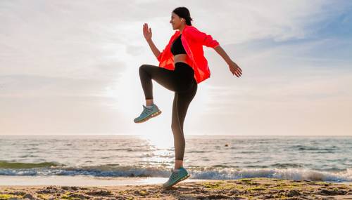 - Первое упражнение — прыжки. Популярным упражнением является так называемый джампинг-джек. Для этого необходимо встать прямо и напрячь живот и ягодицы. Во время прыжка необходимо разводить ноги и хлопать поднятыми руками над головой. Во время приземления сомкните ноги.