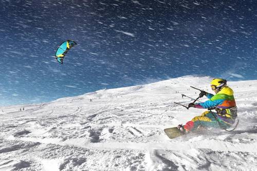 В принципе, для катания и полетов на кайтинге подходят любые водные площадки на озерах, на реках и в море. Но это вовсе не значит, что кайтингисты имеют дело лишь с водой. Этот интересный вид экстремального спорта имеет и зимнюю «прописку». Как вы уже догадались, тут вместо доски особой конструкции можно использовать и лыжи. При этом управление змеем мало чем отличается от управления им на водной поверхности.