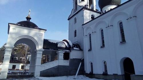Ранее недалеко от монастыря была церковь Покрова Пресвятой Богородицы, но она разрушена, сейчас на месте прежнего храма возводится большая деревянная церковь в честь Покрова Богородицы, в стиле северного русского храмового зодчества.