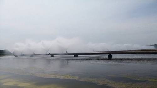 Когда проходишь мимо бассейнов и фонтанов, струи которых достигают высоты в несколько метров, воздух наполнен капельками воды, образующими завесу, и вокруг стоит шум падающей воды. Все это выглядит красиво и завораживает, так бы стоял и любовался. Зрелище чрезвычайно эффектное. Фонтанов несколько сотен, но это не декоративные фонтаны, а производственные, так как это производственный объект.