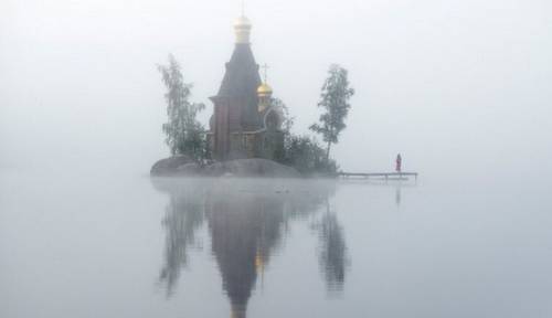 Есть в мире и другие церкви, построенные на островах, посреди воды, но эта по-особенному красива в любое время года. Это место удивительно тем, что православный храм, построенный за несколько лет и освященный 23 сентября 2000 года, занесен в книгу рекордов Гиннесса как единственная в мире церковь с фундаментом на монолитной скале, расположенная на маленьком острове. «Литургическая жизнь» началась в тот же году.