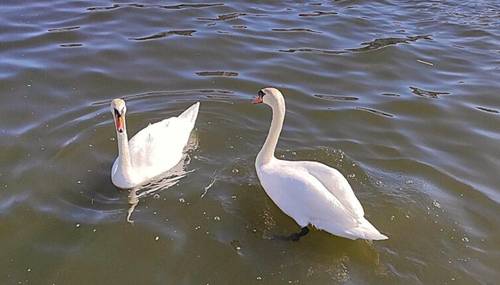 Цветущие деревья наполняли воздух ароматным благоуханием, а грациозные лебеди завораживали изяществом. На набережной Нижнего озера стоит контейнер, где можно купить специальный корм для птиц. Запрещено кормить их булкой, хлебом и печеньем, поскольку желудки птиц не приспособлены к усвоению человеческой пищи.