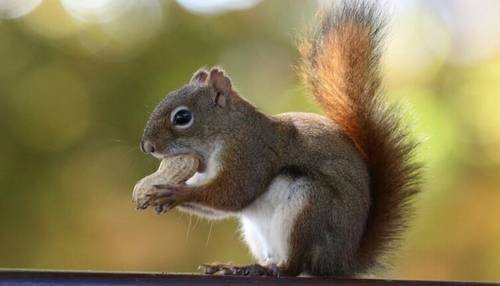 Белки в данные месяцы становятся невероятно деловыми: скачут по деревьям, зарывают орехи и жёлуди, иногда в десятках тайников.
