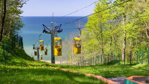 Одновременно в Раушене начали формироваться два района: нижний, у озера, и верхний, у моря. Последний располагался на высоте около 60 м над уровнем моря, поэтому для удобства курортников в 1912 году по маршруту «верхний поселок-море» запустили фуникулёр — 90-метровую наклонную рельсовую дорогу.