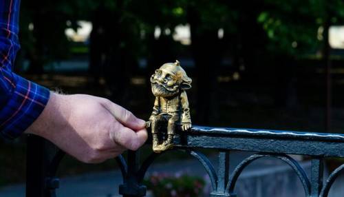 Весёлый и добродушный Дедушка Карл сидит на перилах моста, свесив ножки. Он охраняет замочки любви, наблюдает за туристами и по-доброму улыбается им. Если загадать желание и оставить дедушке Карлу монетку или кусочек янтаря, желание обязательно сбудется.