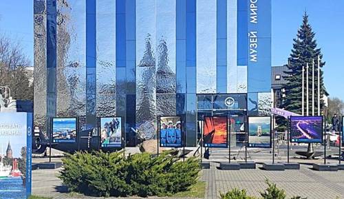 Наше внимание сразу привлек один из корпусов музея, имеющий форму шара диаметром 42 метра со стеклянной поверхностью, составленной из более чем трех тысяч сегментов. Над входом установлен навес в виде огромной океанской волны. Это новый корпус музея — «Планета Океан», символизирующий земной шар, большую часть которого занимает водная поверхность. Сооружение наклонено под углом в 23 градуса, как и ось вращения Земли. Корпус ввели в эксплуатацию недавно, в конце 2024 года, и предполагается его постепенное открытие, по мере готовности экспозиций.