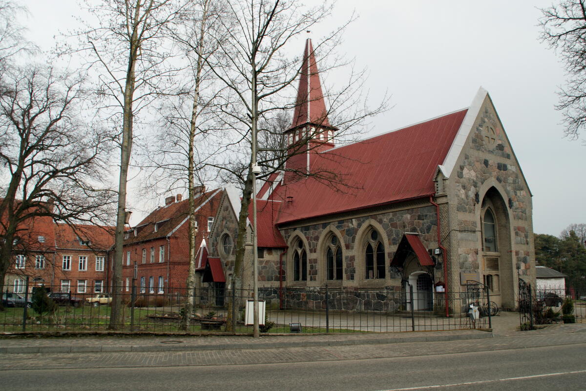 Кирха строилась пять лет как уменьшенная копия капеллы Святого Георгия в саду королевского замка Монбиньон под Берлином. В её младшей восточно-прусской «сестрице» установили орган, на звонницу подвесили два именных колокола от фирмы «Штантиен и Беккер».