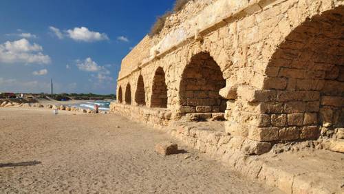 В 30 году до н.э. Башня Стратона была подарена римским кесарем Августом иудейскому царю Ироду Великому, который начал строить на этом месте новый великолепный город римского стиля. В этом городе были созданы дворцы, совершеннейший по тем временам порт, театр, ипподром, акведук (вода подавалась из источников в 20 км от города), римские бани.