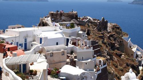 Но все же главной достопримечательностью островов Санторини являются города, вернее их архитектура. Узенькие улочки, белокаменные постройки и голубые крыши церквушек, крохотные домики, прилепившиеся к скалам, как ласточкины гнезда — все это создает неповторимый архитектурный ансамбль.