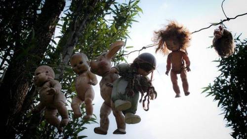 Здесь на деревьях прибиты и подвешены за шеи старые куклы. Всех их время превратило в безобразных уродцев с оторванными конечностями, одетых в лохмотья, которые отовсюду следят за вами пустыми глазницами, затянутыми паутиной.
