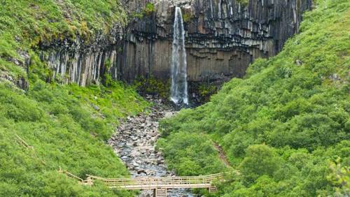 Исландцы трепетно относятся к природе своей страны. Поэтому здесь много национальных парков и заповедников. Скафтафетль получил статус национального парка не так давно — в 1967 году. Ландшафт парка сформирован под воздействием вулканической деятельности и ледников. Национальный парк известен своими достопримечательностями во всем мире. Здесь множество водопадов, среди которых самым известным считается Свартифосс. Он падает с базальтовых колонн черного цвета. Его еще называют «Черный водопад».