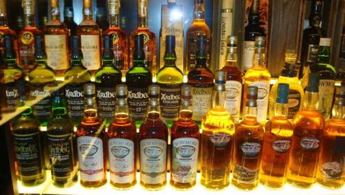 Четвёртый этап тура — полутёмный зал с освещёнными витринами. Самая большая в мире коллекция шотландского виски. Подарена Центру наследия бразильским миллионером Диагео Клайвом Дигизом. Бутылки, бутылки, бутылки… Все разные, три с половиной тысячи.
