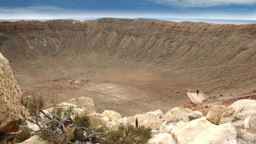 Конечно, крупные кратеры, в том числе кайнозойского возраста, имеются и на поверхности Земли. Как один из примеров широко известен Аризонский метеоритный кратер поперечником 1,2 км и возрастом 50 тысяч лет, оставленный железо-никелевым метеоритом диаметром около 60 м, столкнувшимся с Землей на скорости примерно 20 км/с.