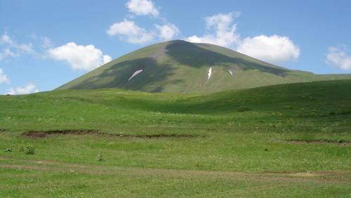 От Севана, который в старину армяне называли Гегамским морем, трудно оторвать глаз. Но вот мы проезжаем село за селом, и перед нами — гладкая, будто покрытая заботливой рукой ровным зеленым сукном гора. Это и есть потухший вулкан — Армаган. Почва вокруг благодатная, растительность богатая. Аромат такой, что кружится голова. Здесь перемешались запахи всех трав и цветов — маки, лютики, дикий горошек, душица, чабрец, мята… Голубое небо с кучевыми облаками и птичий гомон.