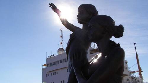 Морской вокзал отреставрировали. И сейчас он выглядит солидно, в лучших европейских традициях. За ним — гостиница и церковь. В конце пристани — памятник жене Моряка. На мой взгляд, это один из самых трогательных памятников Одессы: молодая женщина с ребенком смотрят в морскую даль.